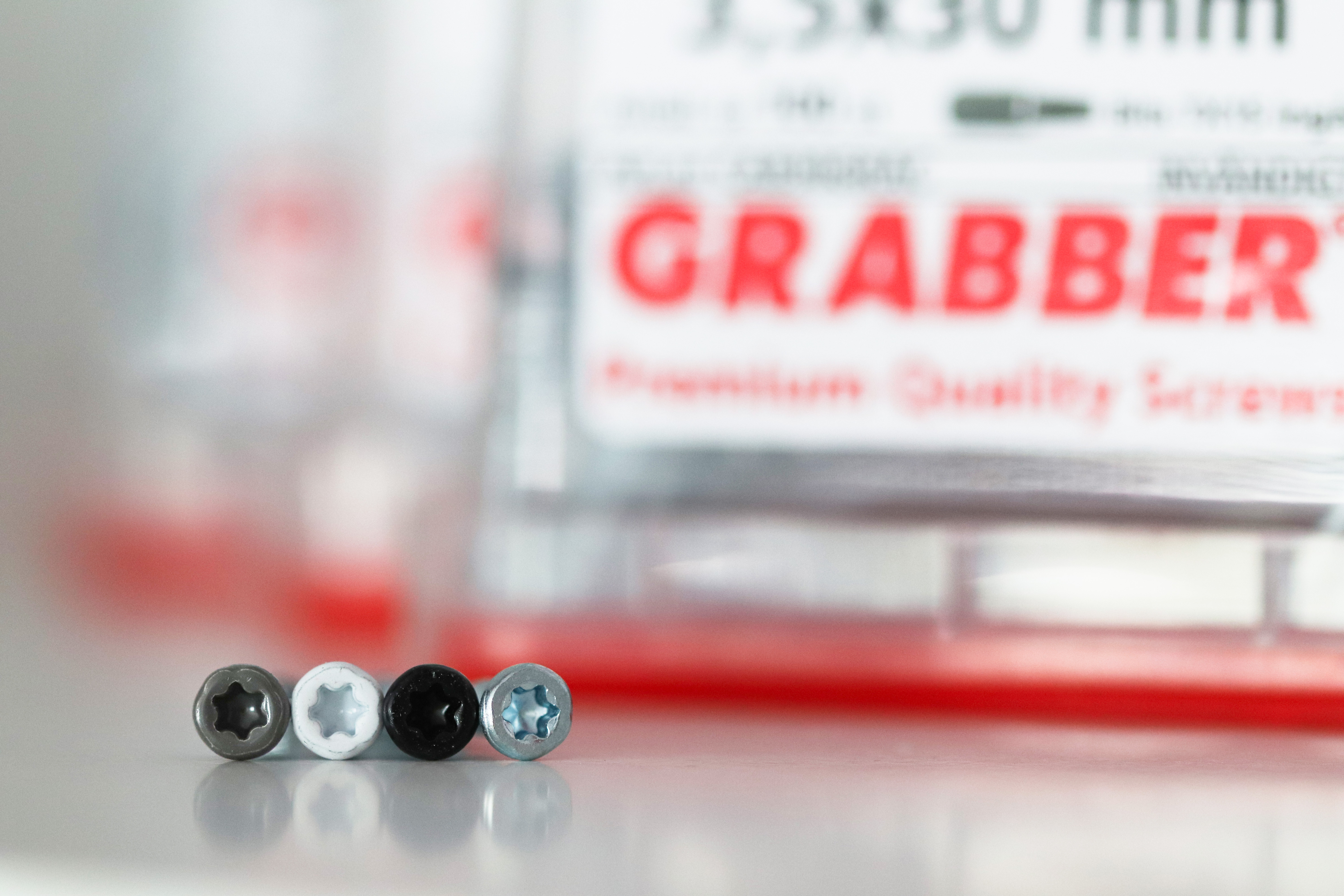 Grabber® lanserar ”CAB” - en ny tunnare inredningsskruv, dimension 3,5x30, i fyra olika nyanser på skallen och med en spets för ännu snyggare slutfinish. Avsedd för köksinredning och skåp. Finns med svart-,vitt-, mörkgrått och blankförzinkat huvud för att matcha inredningen.