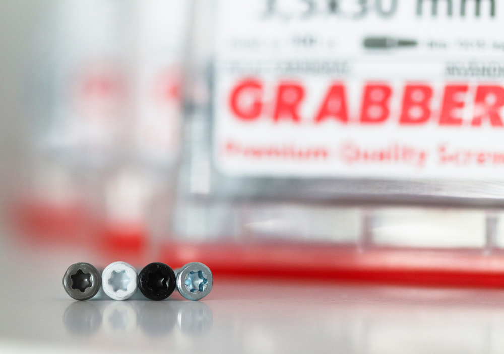 Grabbers inredningsskruv CAB, med dimension 3,5x30, lämpar sig för sammanfogning av skåpstommar, exempelvis garderober och andra förvaringsutrymmen. En mångsidig skruv för en mängd olika inredningsprojekt där den tunnare dimensionen blir mindre synlig i montaget. Den ger en snygg och diskret slutfinish då det försänkta huvudet gör att den inte fläker upp eller fransar melaminet. Designad med TX-grepp för stabil iskruvning och greppar snabbt i materialet. Den dubbla gängningen ger en ”feel-good-factor” – det känns tydligt när skruven pressar ihop stommarna och det känns tydligt när det är klart. Finns med svart-,vitt-, mörkgrått och blankförzinkat huvud för att matcha inredningen.